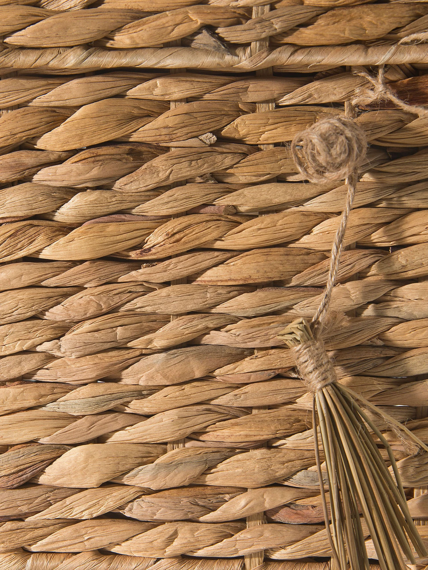 Praktisch, natürlich und nachhaltig. Handgefertigt aus Wasserhyazinthe. Handgriffe stabilisiert mit Metallkante.