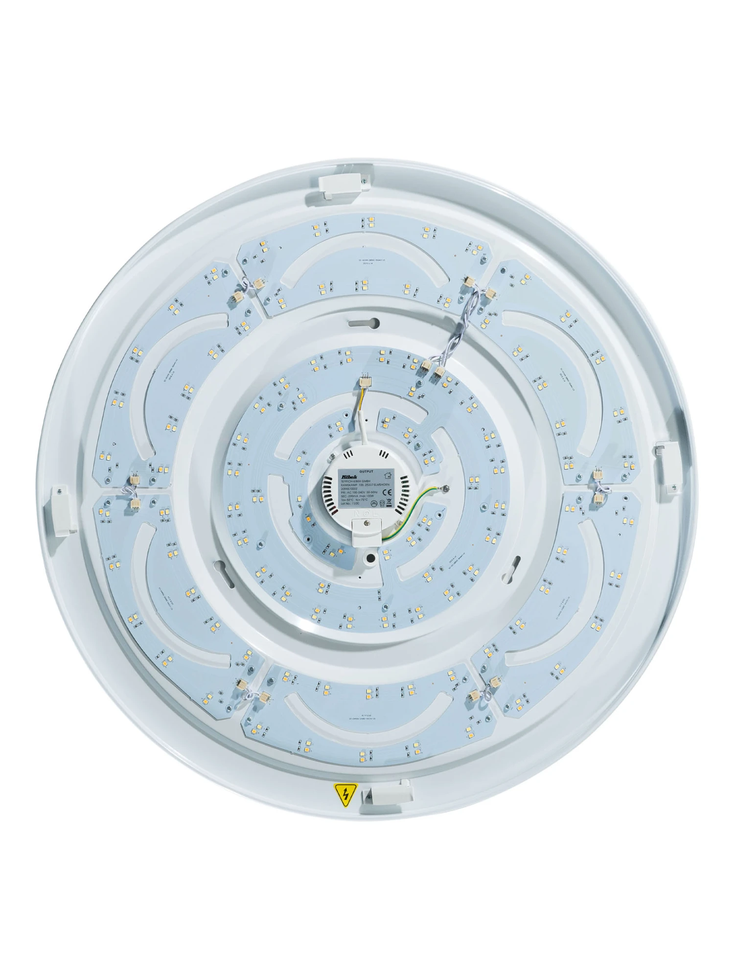 Die Wand- und Deckenleuchte ist mit der beigefügten Fernbedienung steuerbar und dimmbar. Der Schirm ist aus Kunststoff gefertigt.