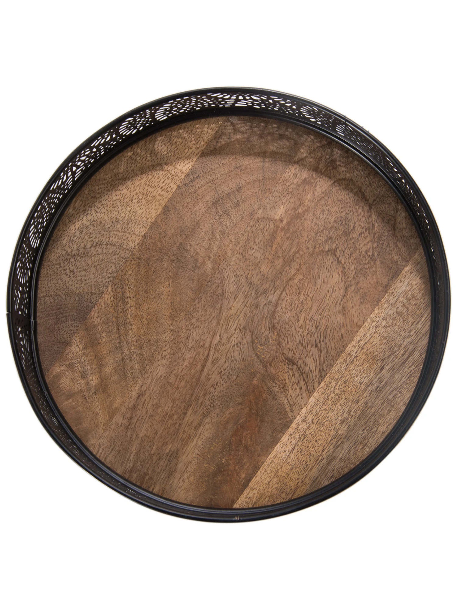 Perfekt für die stilvolle Dekoration in Ihrem Zuhause. Schwarzes Metall mit Lochmuster kombiniert mit einer Holzplatte.
