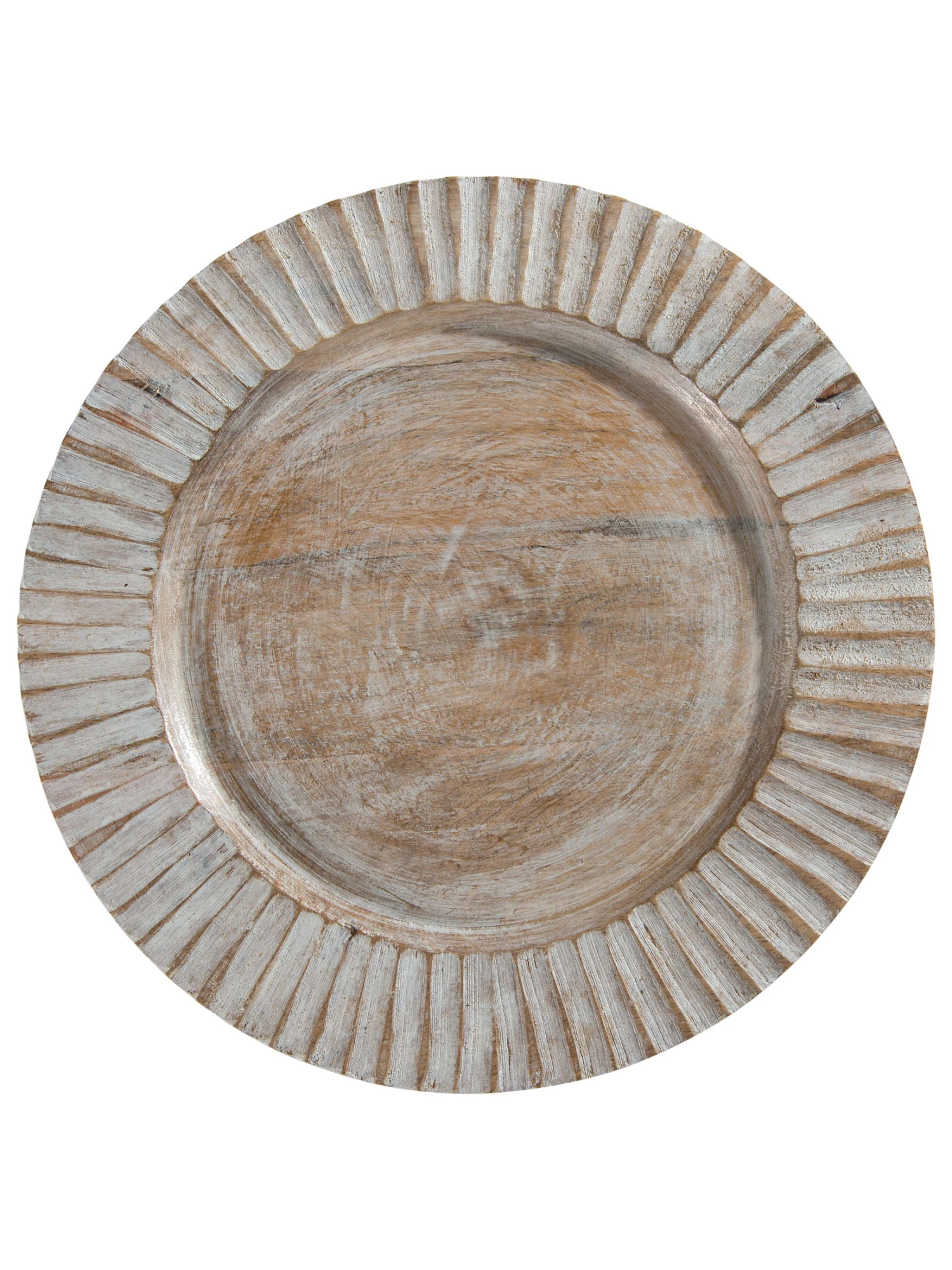 Deko-Teller aus Mangoholz. Die weiße Lasierung gibt dem Teller einen attraktiven Vintage-Look.