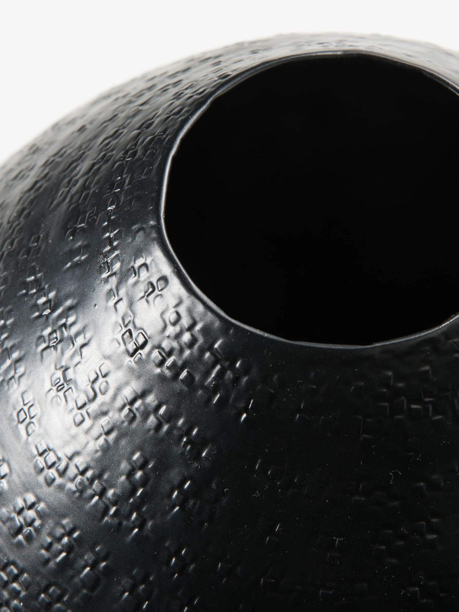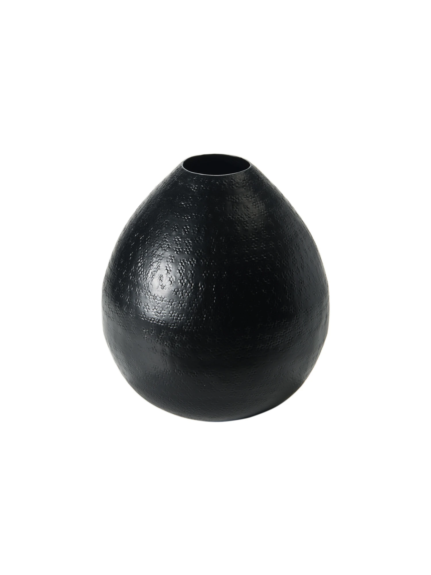 Formschöne Vase aus Aluminium mit fein strukturierter Oberfläche.