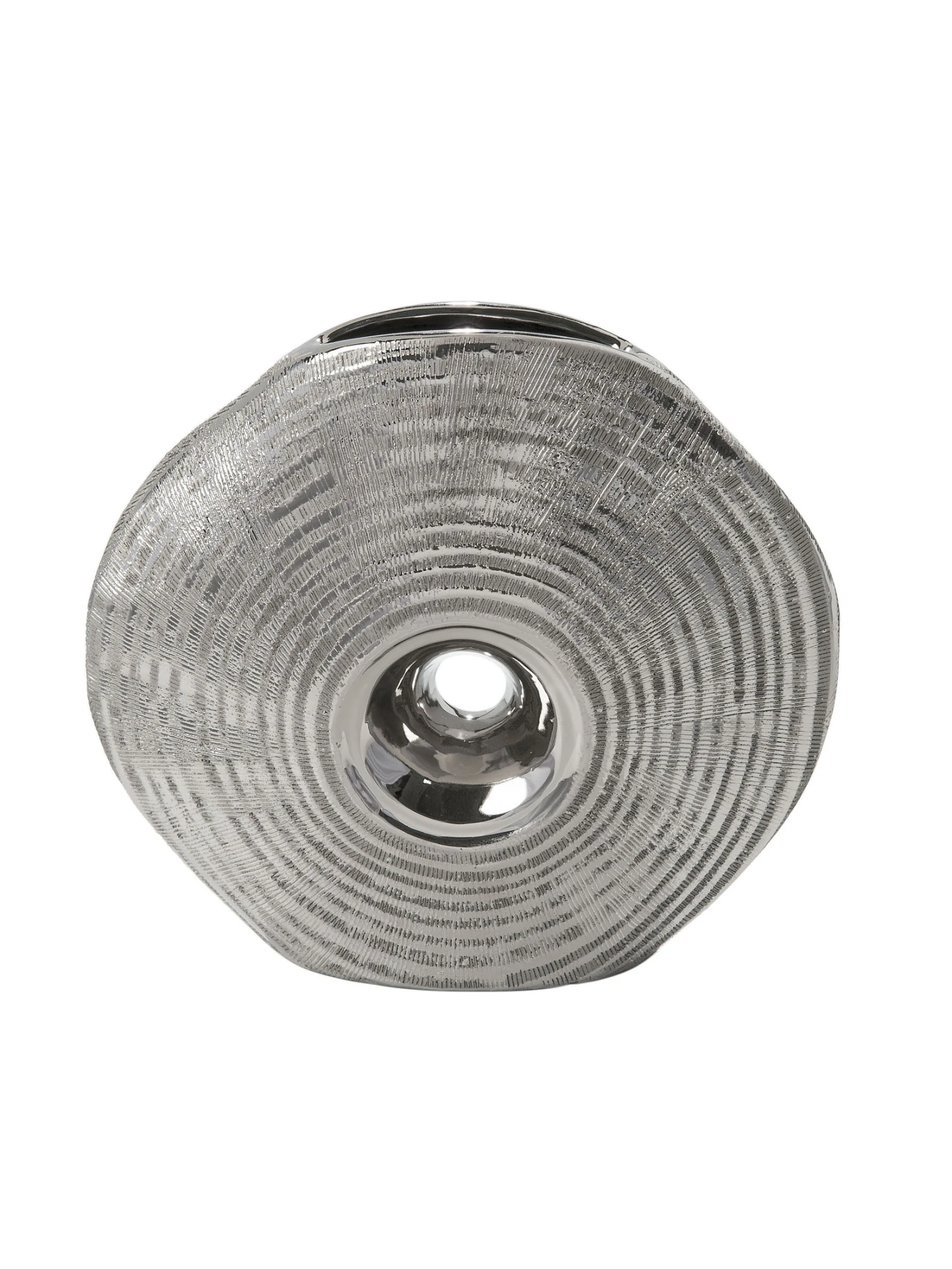 Keramikserie in silber. In drei miteinander harmonierenden Ausführungen: Teelichthalter, Vase und Schale.