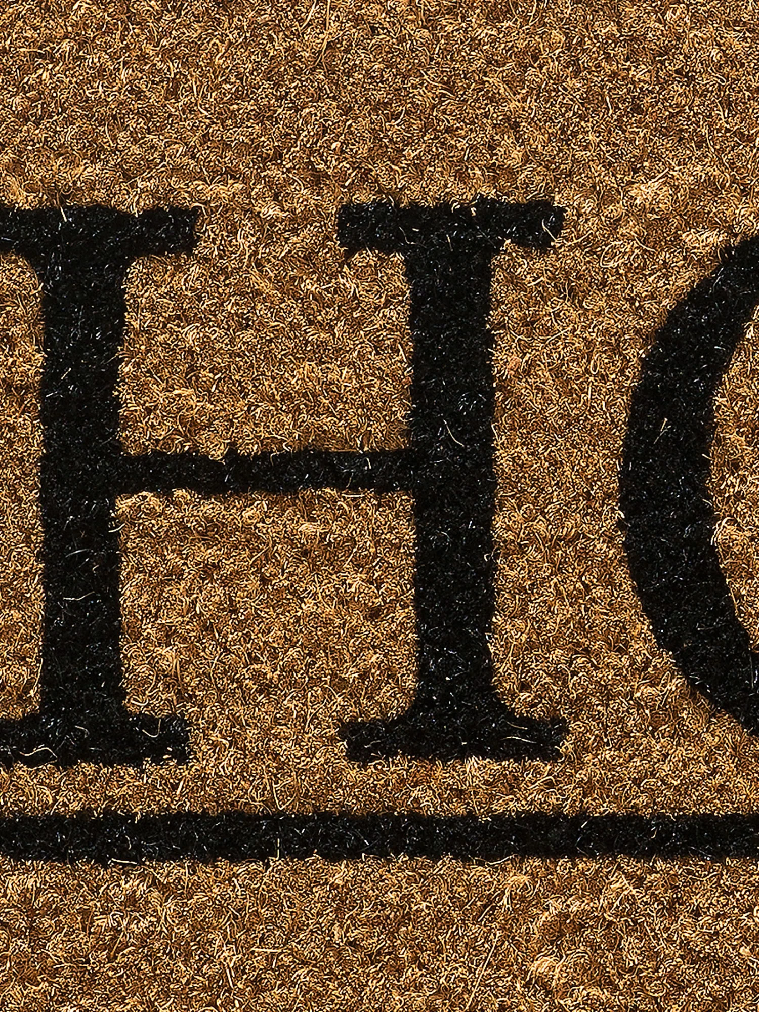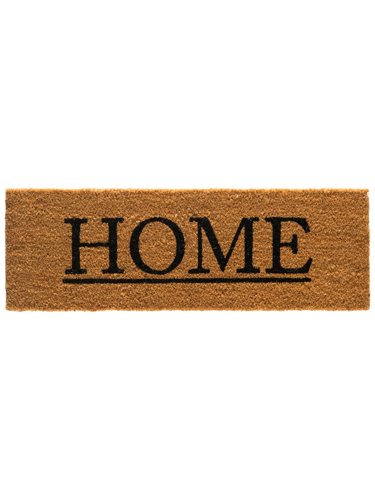 Klassisch beschriftete Kokos-Fußmatte in einem besonderen Format.