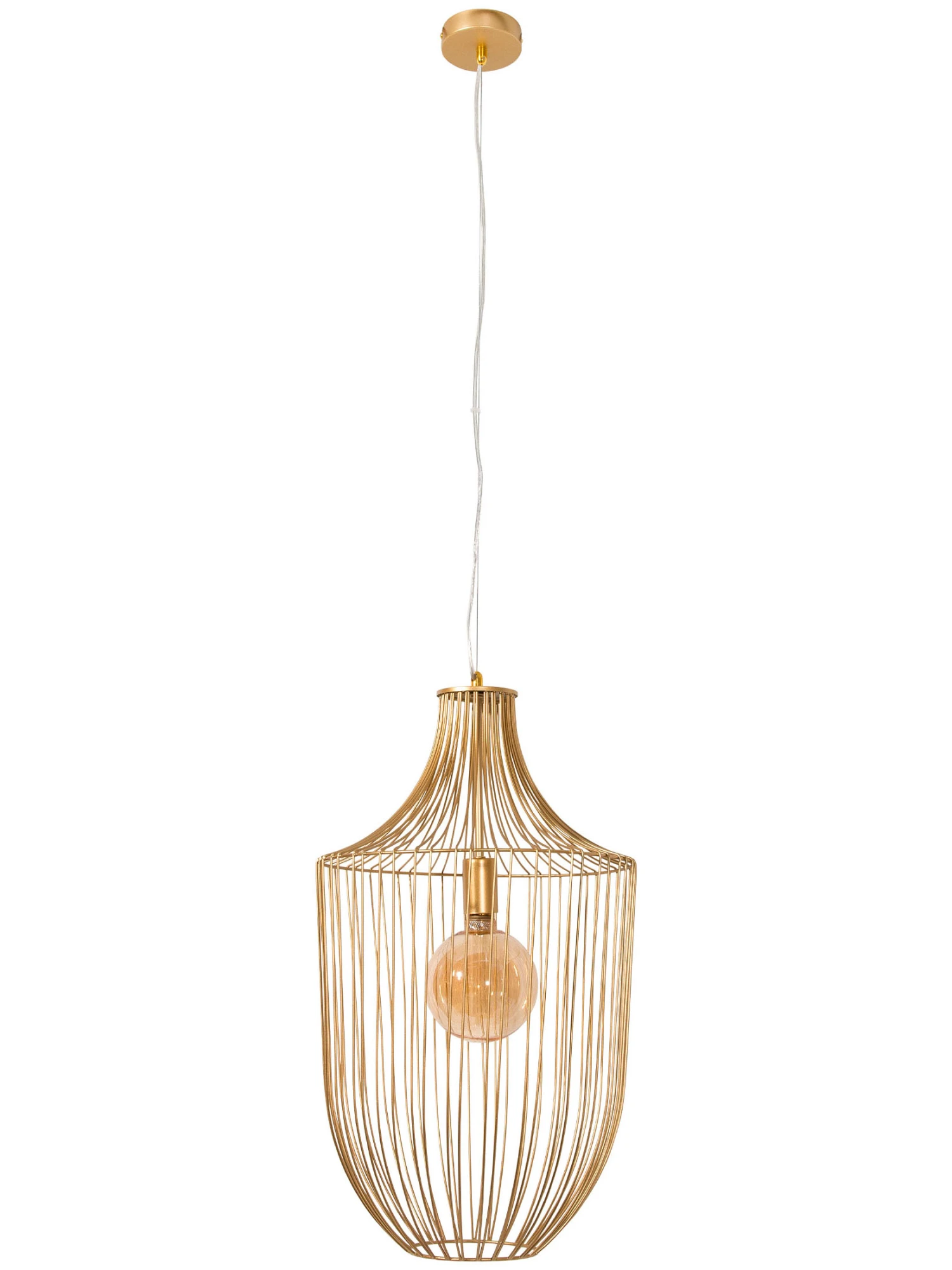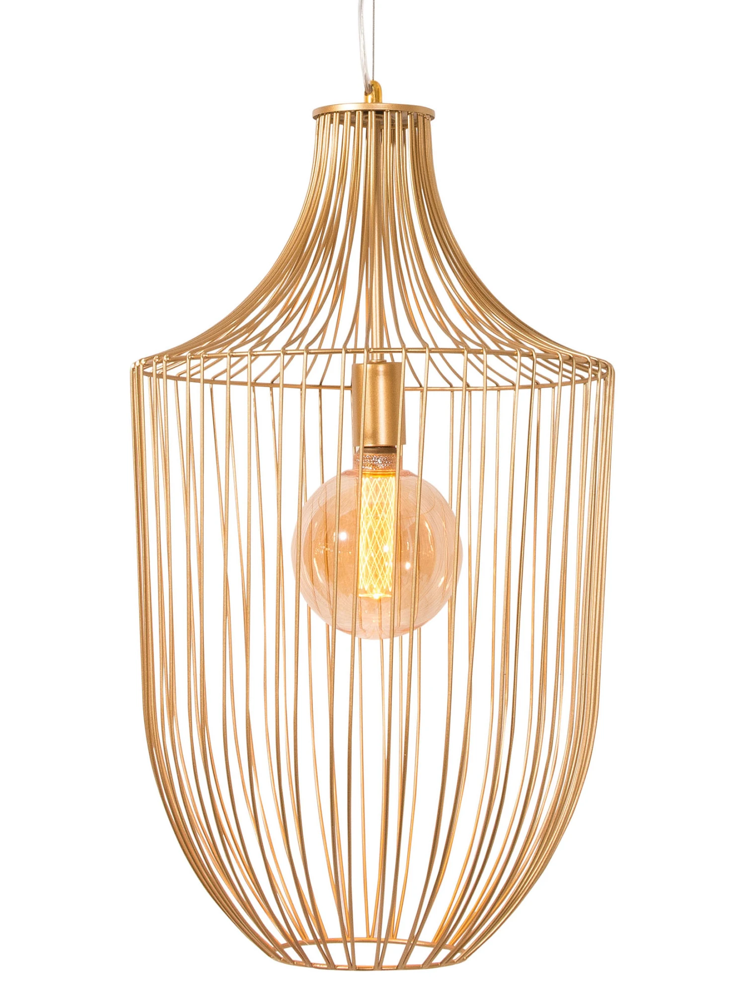 Edle Pendellampe aus Metall. EEK: A++-E. Exkl. Leuchtmittel E27 max. 40W. Ca. 35 cm Ø, 120 cm hoch.
