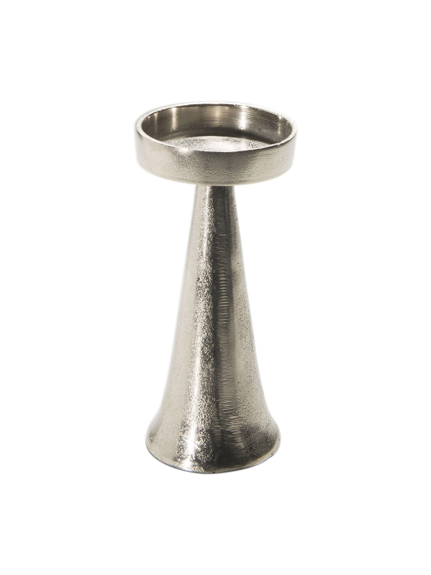 Edle und schlichte Kerzenleuchter für Stumpenkerzen, gut geeignet für die geschmackvolle Tischdekoration. Aus Aluminium gefertigt.