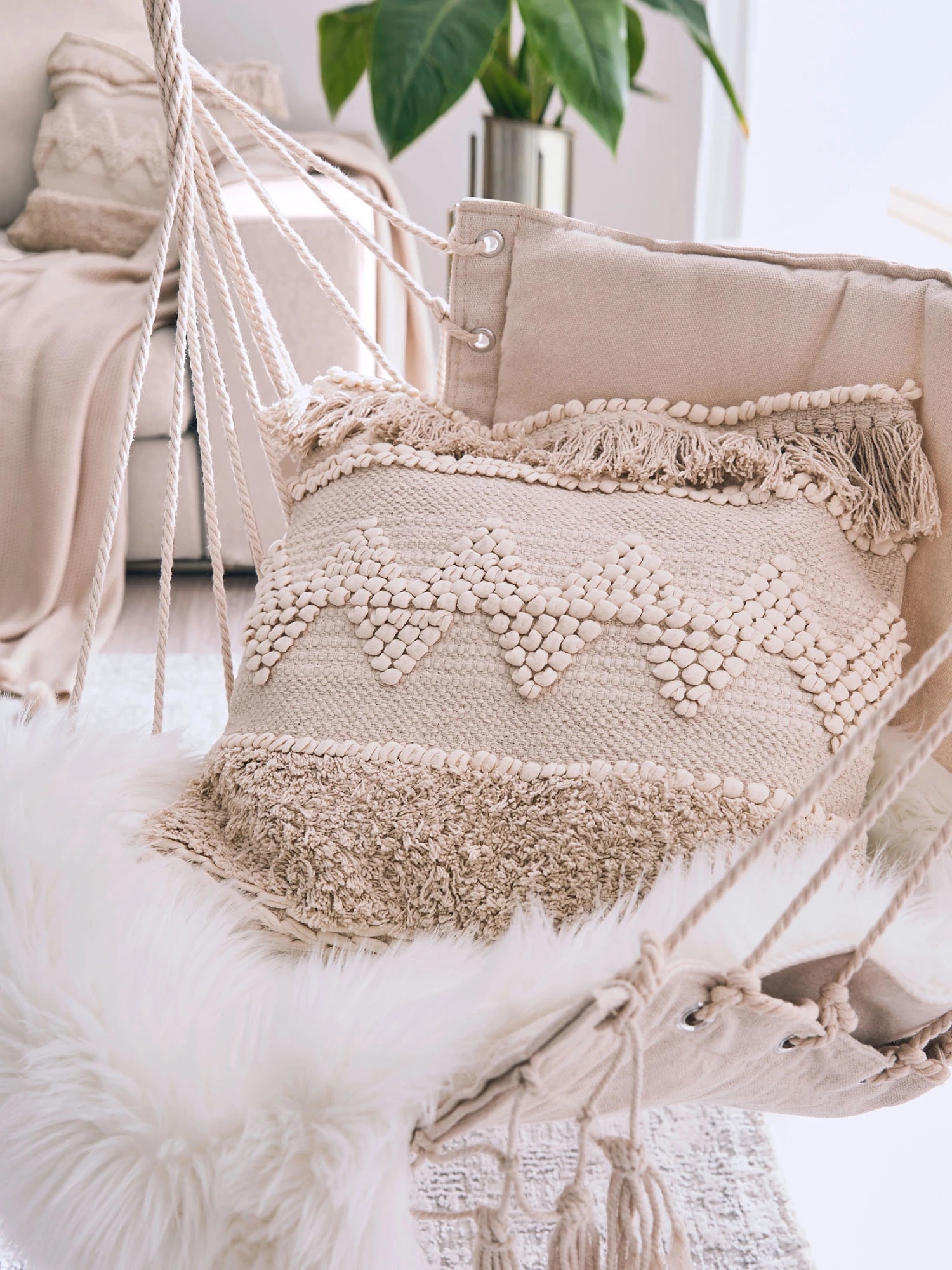 Die ideale Ergänzung zu den angesagten White Ibiza- oder Natural Ground Trends. Der Bezugstoff aus reiner Baumwolle sorgt für Wärme und Behaglichkeit. Inklusive Füllung aus 100 % Polyester und Reißverschluss. Okeo-Tex Standard 100.