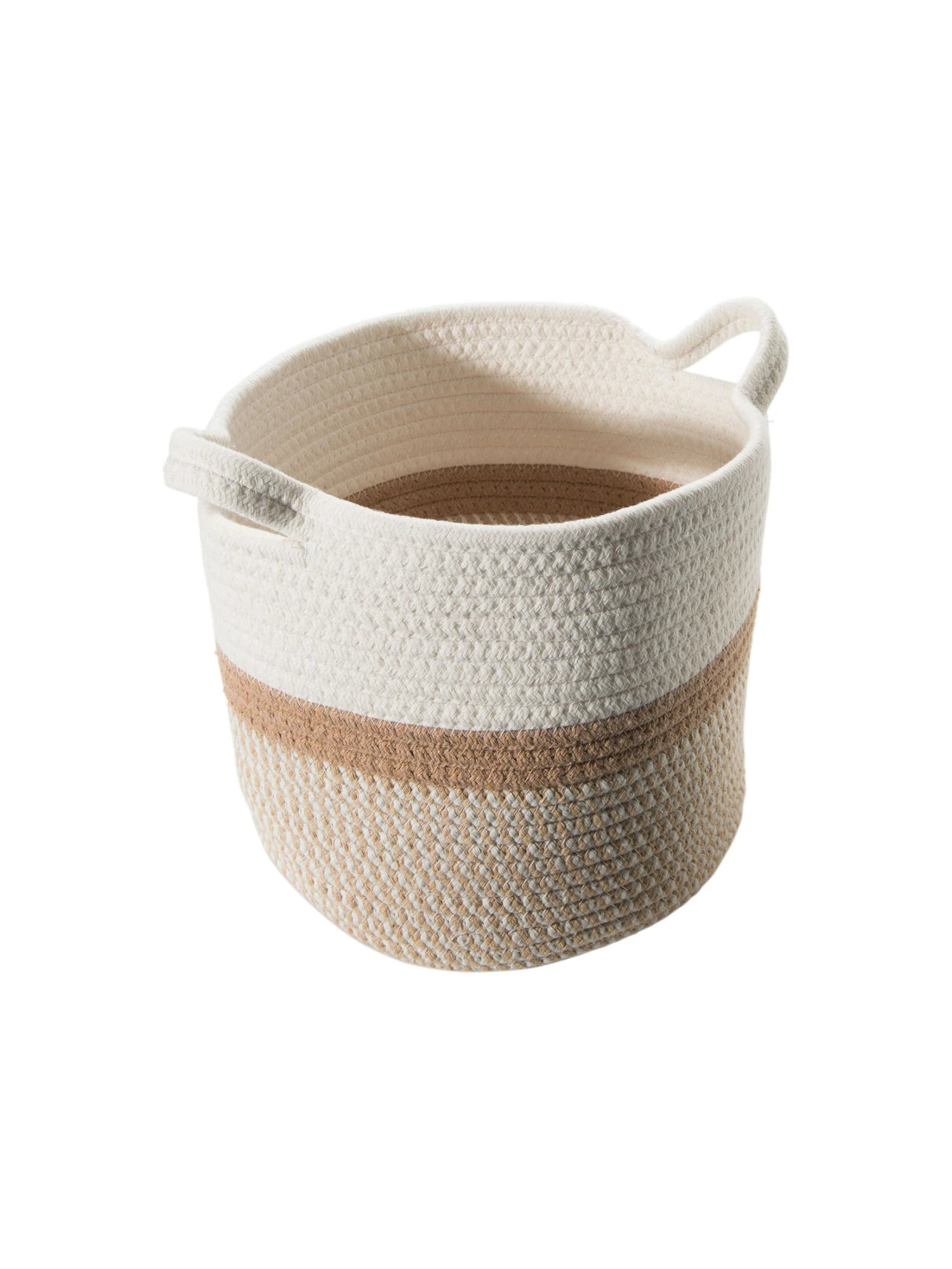 Zylindrischer Korb aus Baumwollkordel gefertigt. Mit praktischen Henkeln.