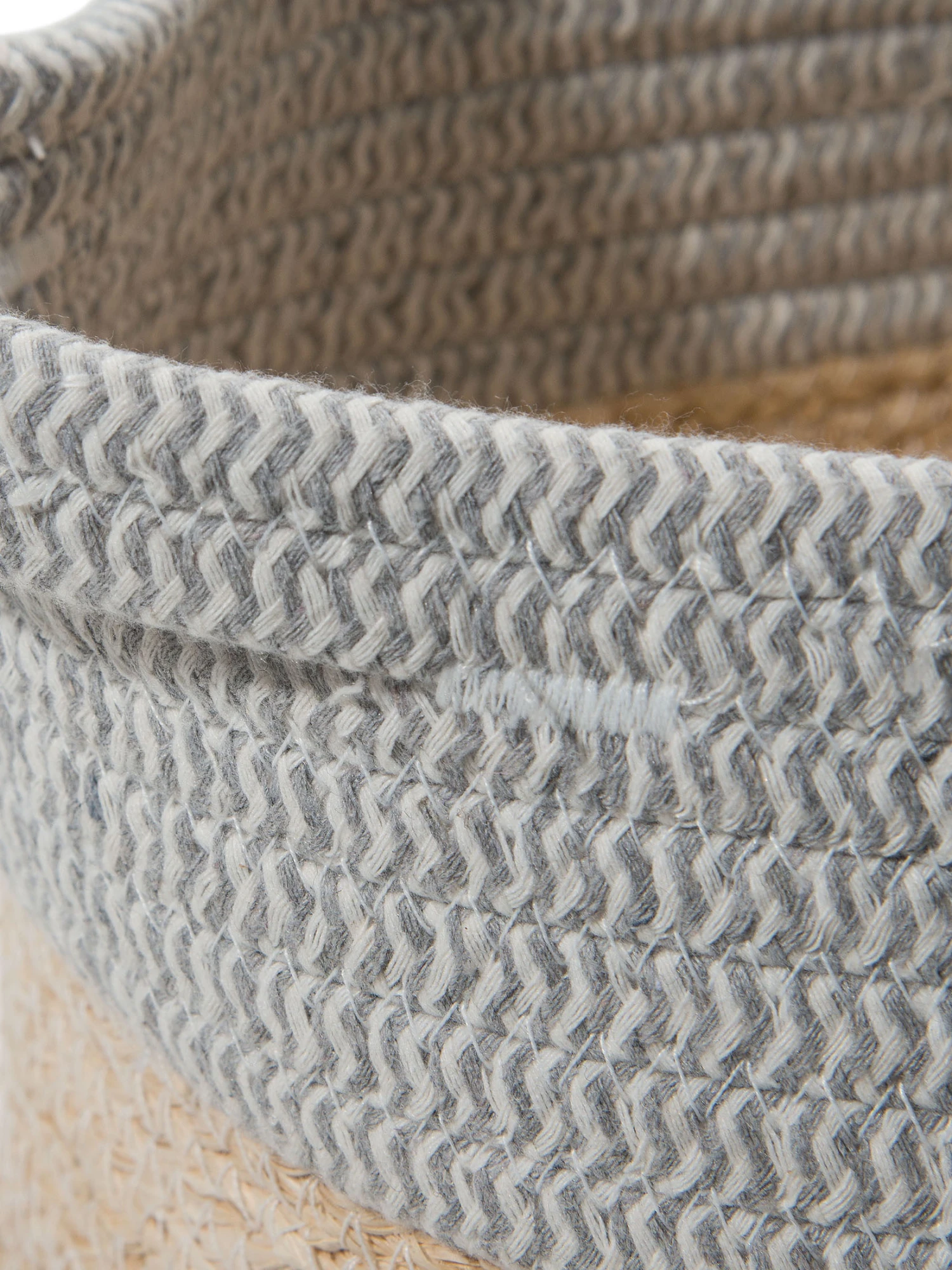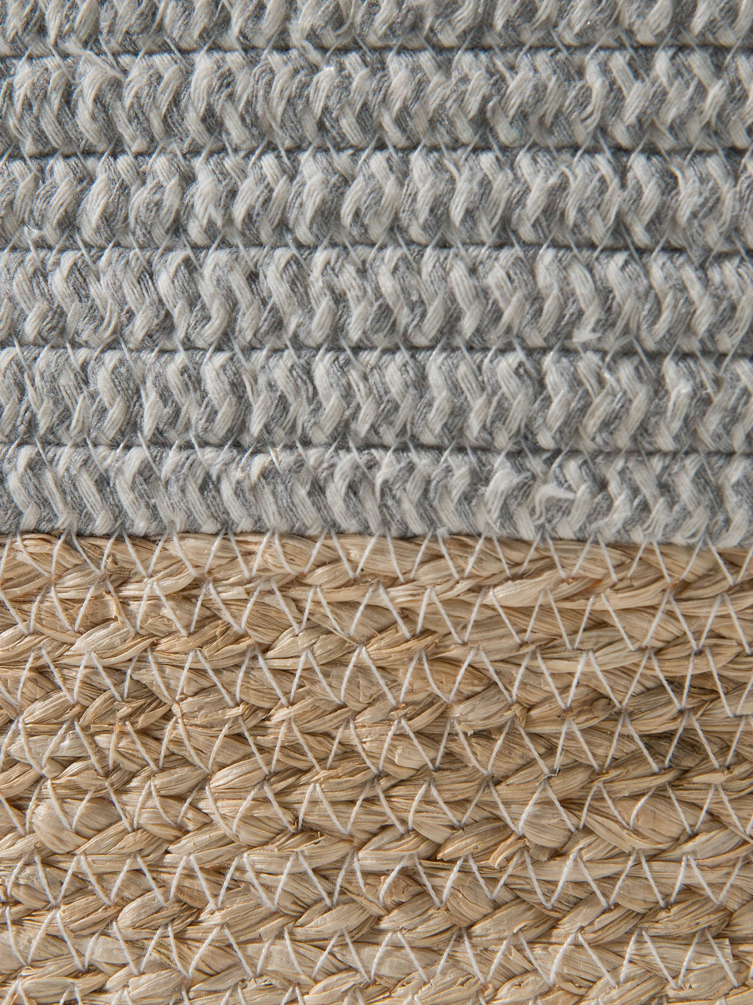 Ovaler Bicolor-Flechtkorb aus Baumwolle und Maisgeflecht. Mit Griffen.