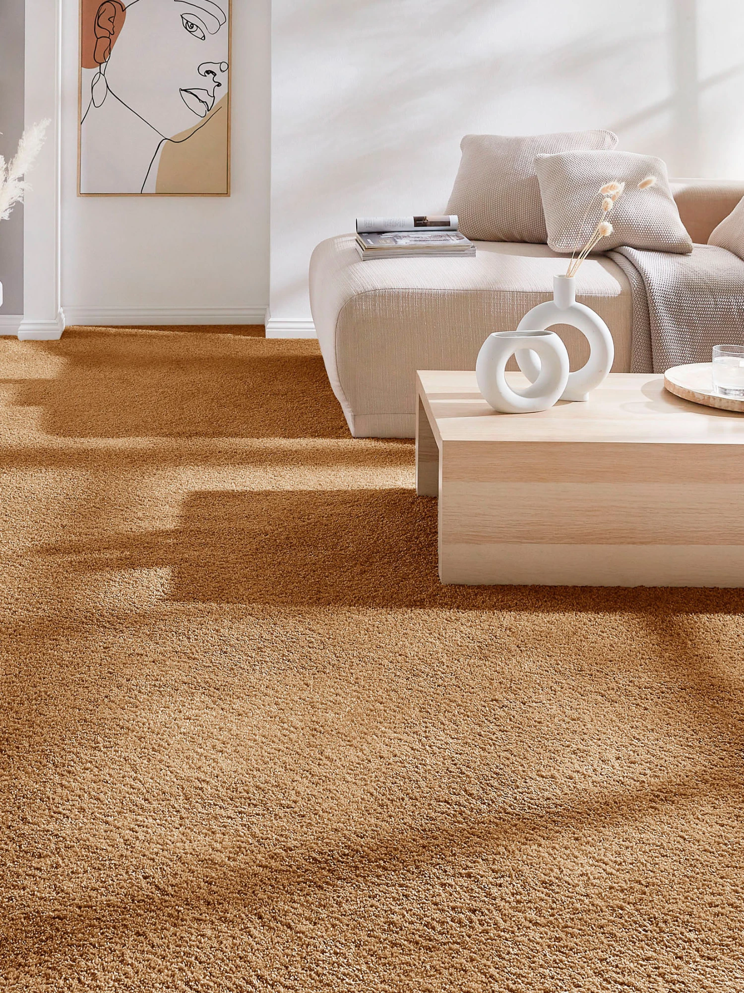 Ein höchst attraktiver Kräuselvelours-Teppichboden mit einem schönen, dichten und weichen Flor in trendigen Farben. Dieses KIBEK-Spitzenprodukt ist zudem bemerkenswert strapazierfähig und sehr pflegeleicht. Das hohe Gesamtgewicht von ca. 2300 g pro m² und die Florhöhe von ca. 16 mm bieten besonders hohen Komfort und vermitteln luxuriöses Wohngefühl. KIBEK-DoubleTex-Vliesrücken. Fußbodenheizungsgeeignet, antistatisch und schadstoffgeprüft.
