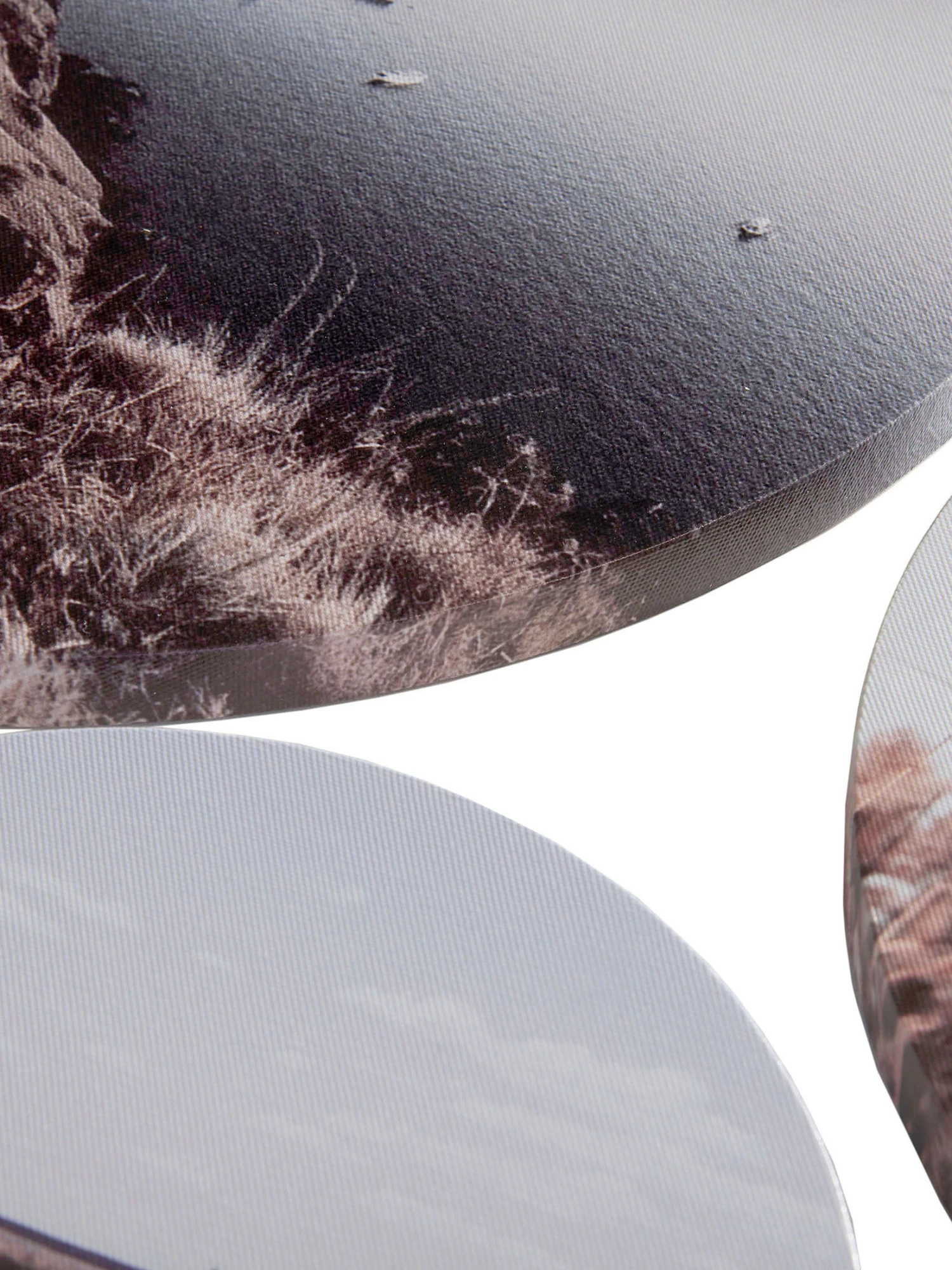 Kunstdruck-Serien auf Leinwand. Auf Holzrahmen gespannt. 3er Set bestehend aus den Größen ca. 20 cm Ø, ca. 30 cm Ø und ca. 40 cm Ø.