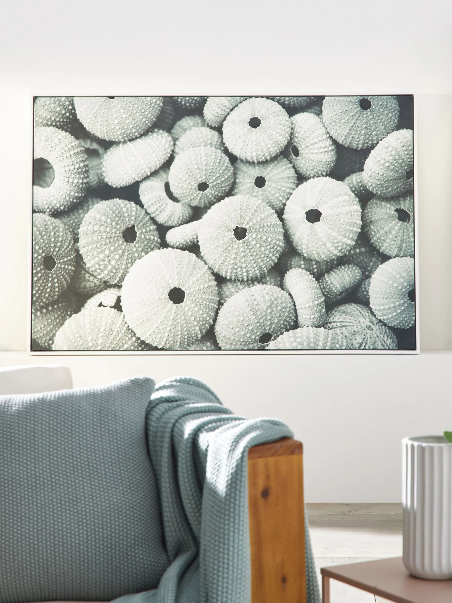 Die Natur bringt die interessantesten Strukturen hervor. Fotodruck mit Seeigeln in beeindruckender Größe. Gleich fertig zum Aufhängen. Im Rahmen und mit Aufhängung.