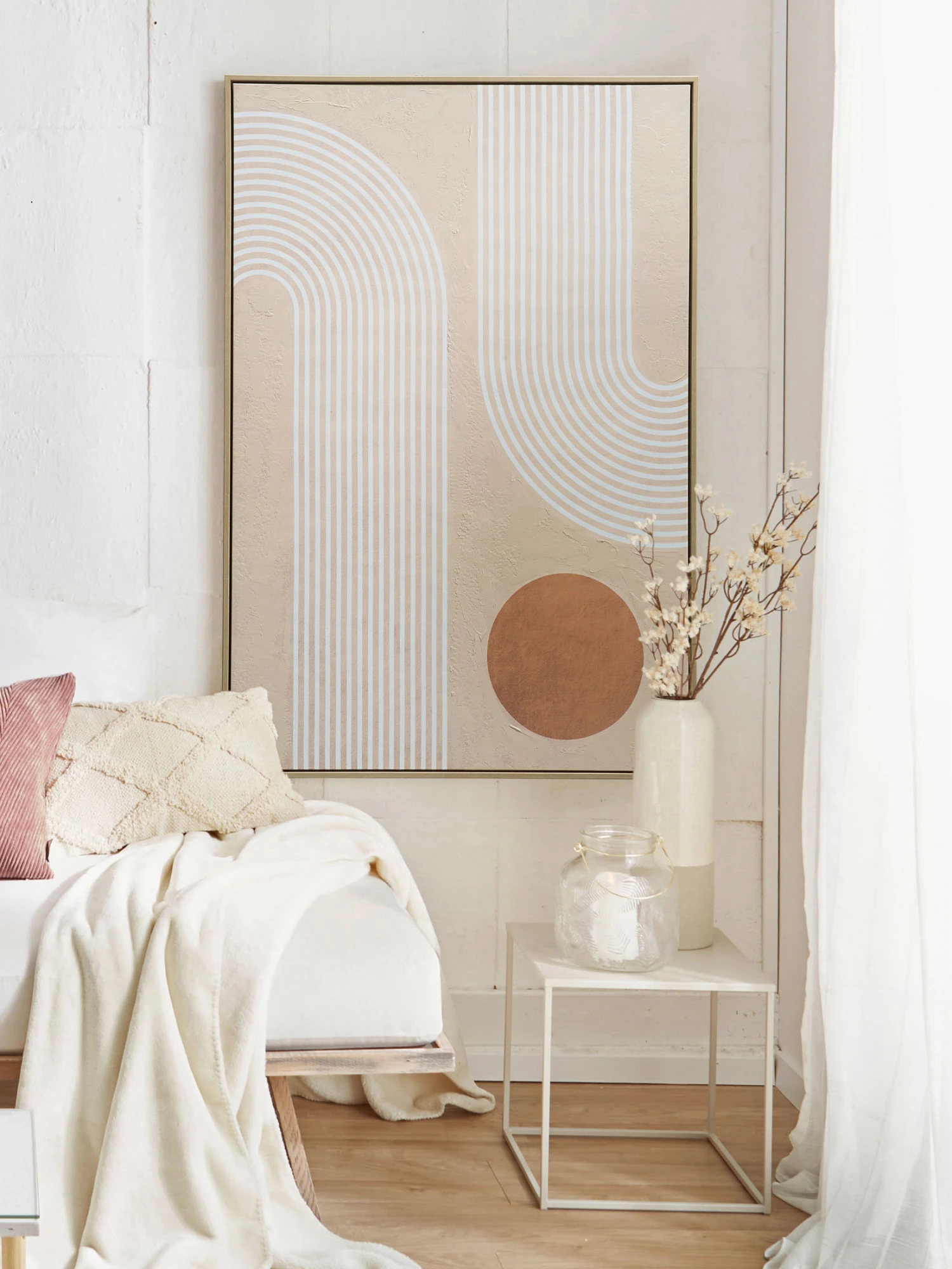 Modernes, grafisches Giclée mit MDF-Rahmen. Fertig gerahmt. Teils handgemalt. Ca. 4,3 cm stark. Inklusive stabiler Aufhängung.
