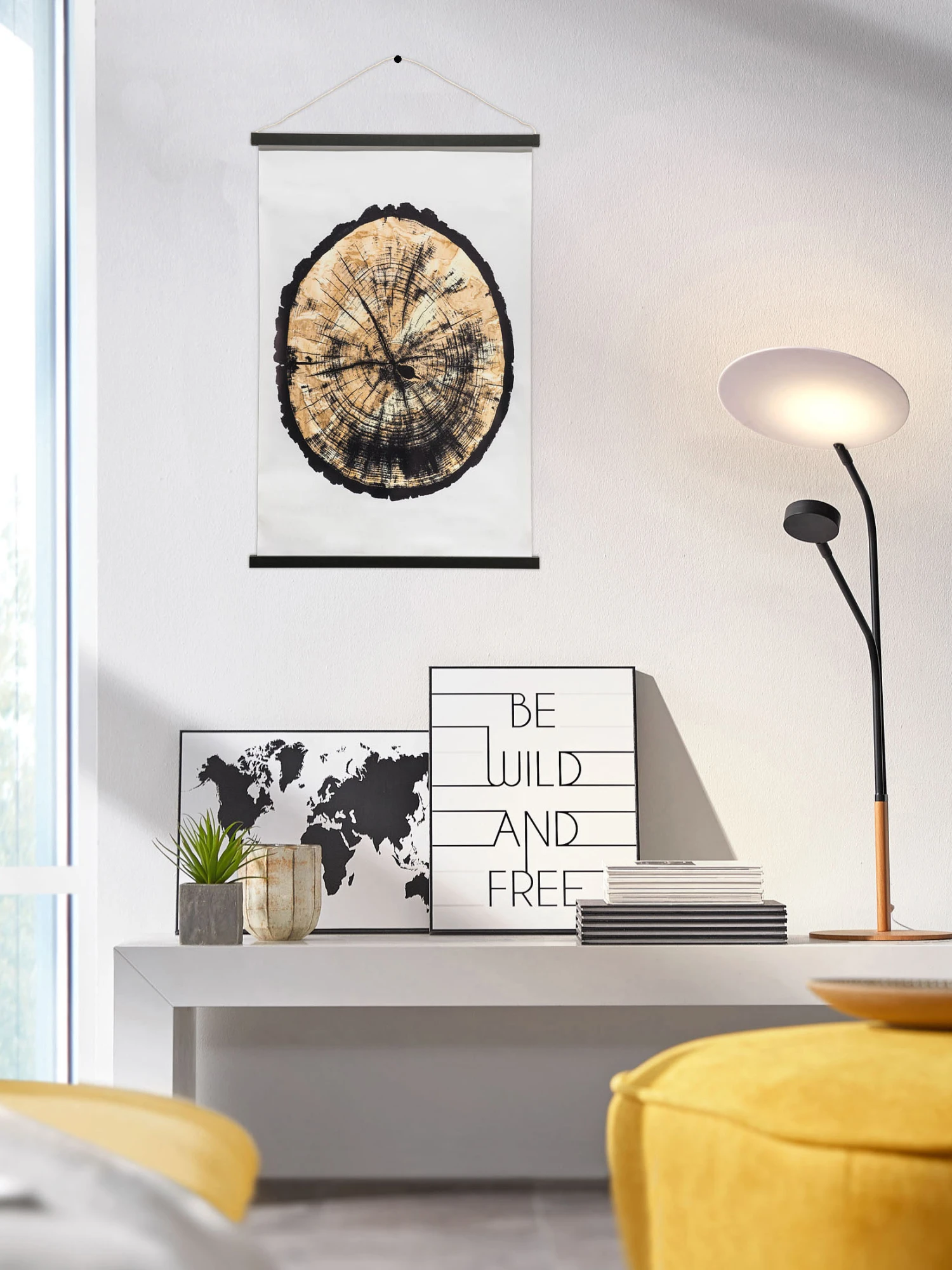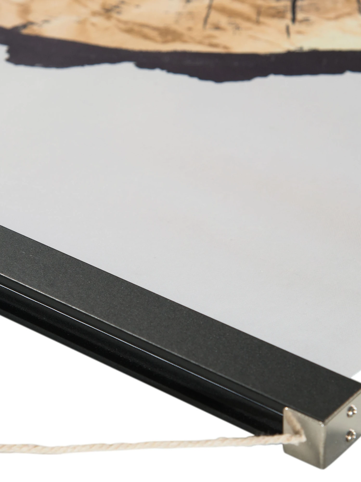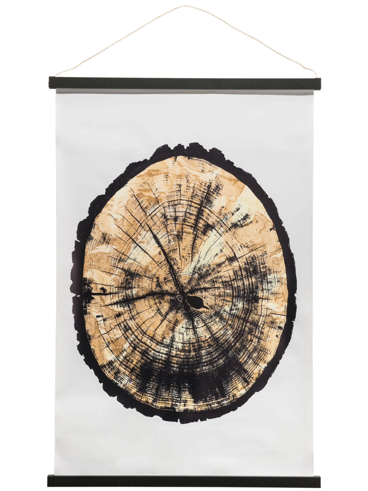 Oben und unten auf Echtholzstab befestigt. Hanfseil-Aufhängung.