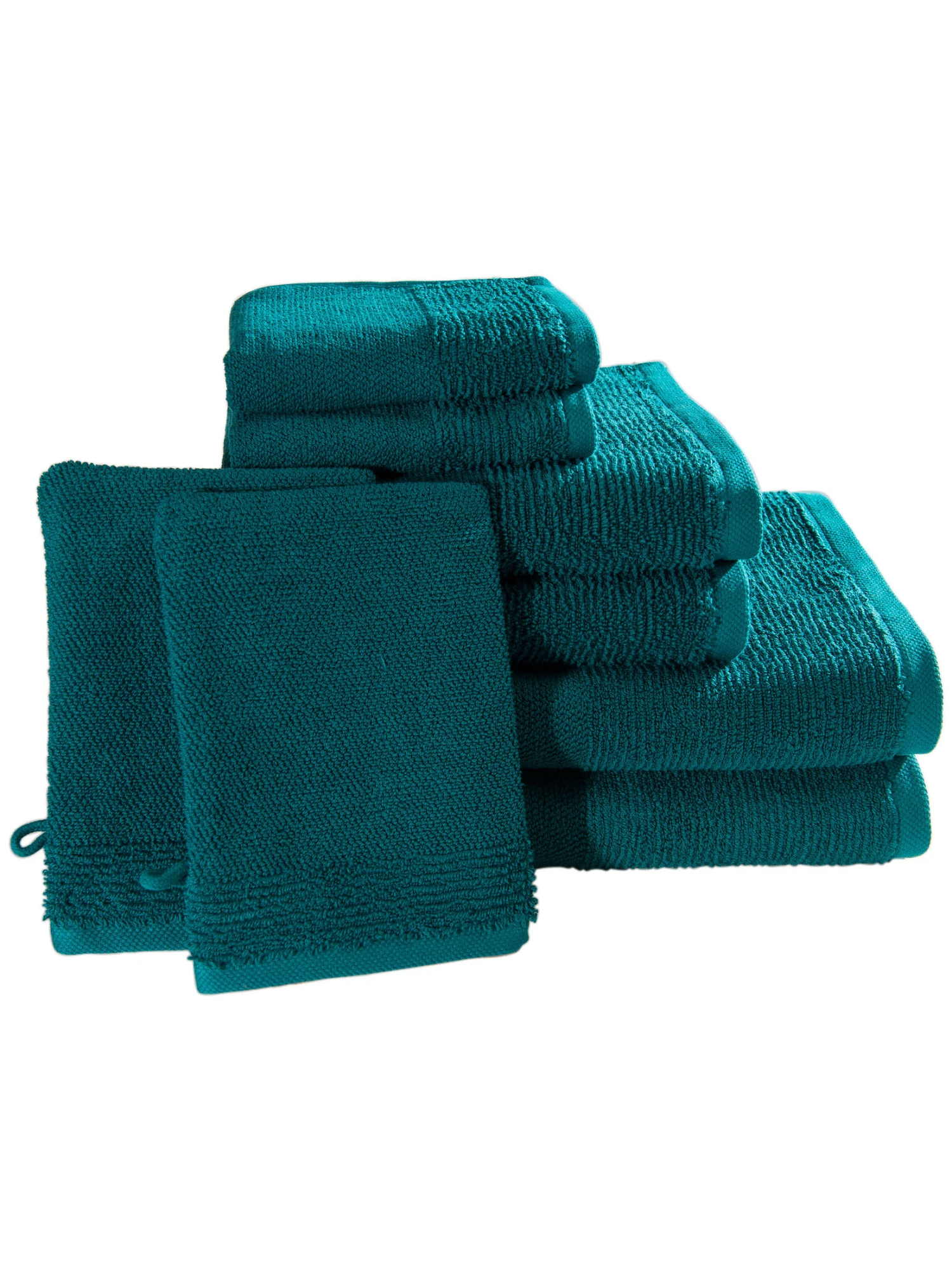 Das 8-teilige Vorteilspaket besteht aus zwei Waschhandschuhen je ca. 16 x 22 cm, zwei Gästetüchern je ca. 30 x 50 cm, zwei Handtüchern je ca. 50 x 100 cm und zwei Duschtüchern je ca. 70 x 140 cm.