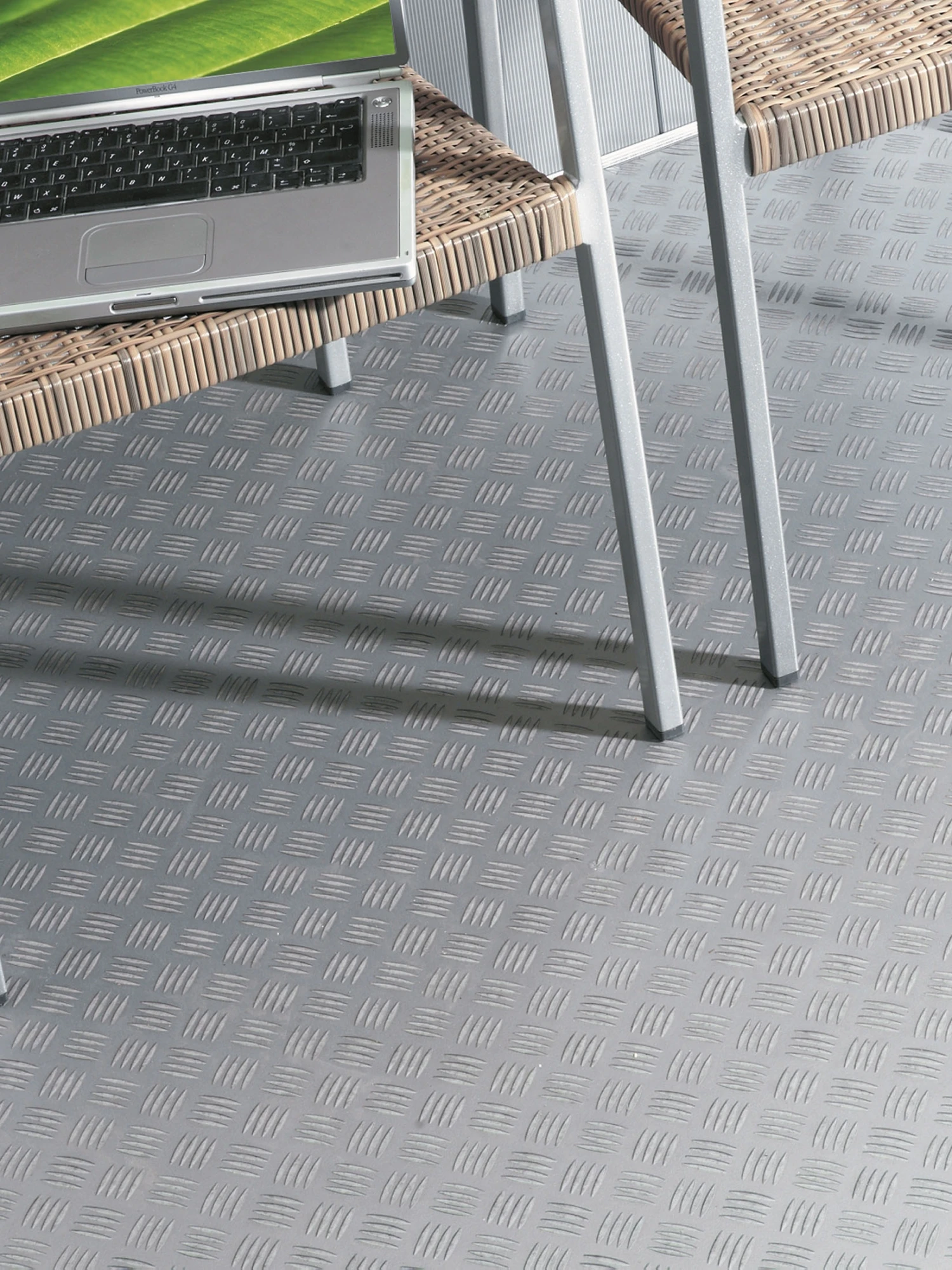 Moderne Vinyl-Rollenware im zeitlosen Design. Nutzsicht 0,15 mm. Für Fußbodenheizung geeignet.