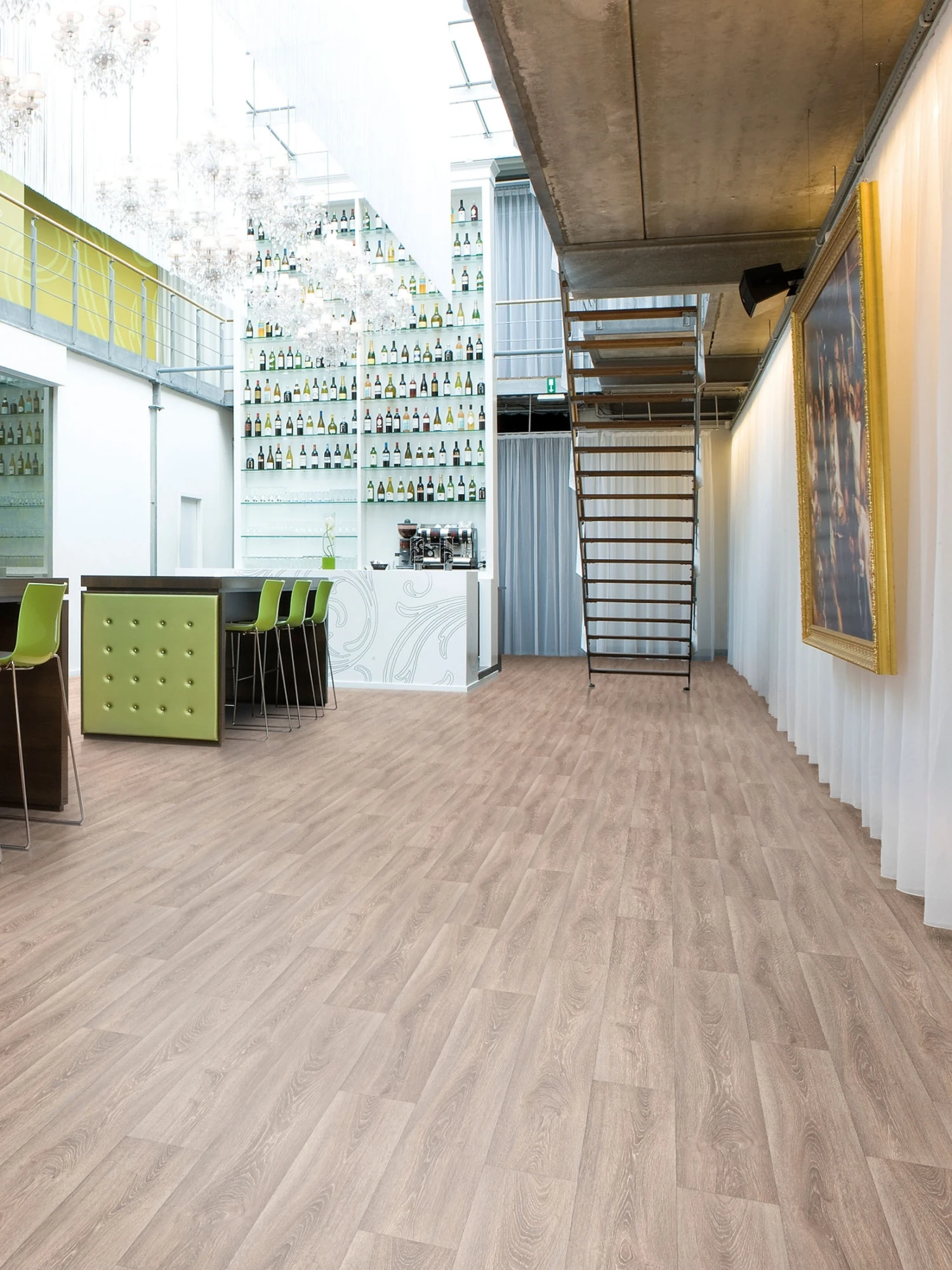 Vinylbodenbelag mit natürlichem Holzdesign. Mit einer Stärke von 2,80 mm äußerst belastbar. Für den gesamten Wohnbereicht geeignet. Auch für Räume mit Fußbodenheizung geeignet.