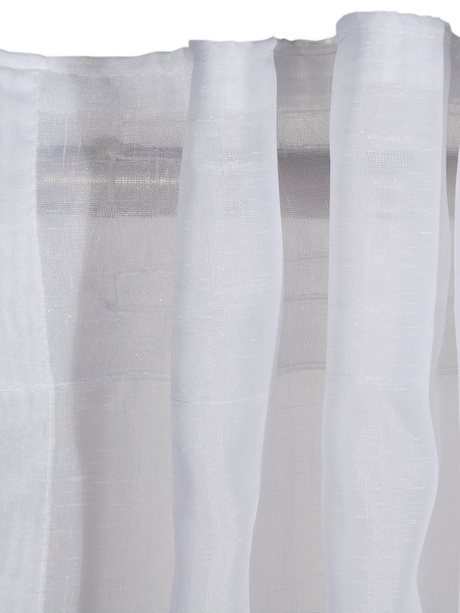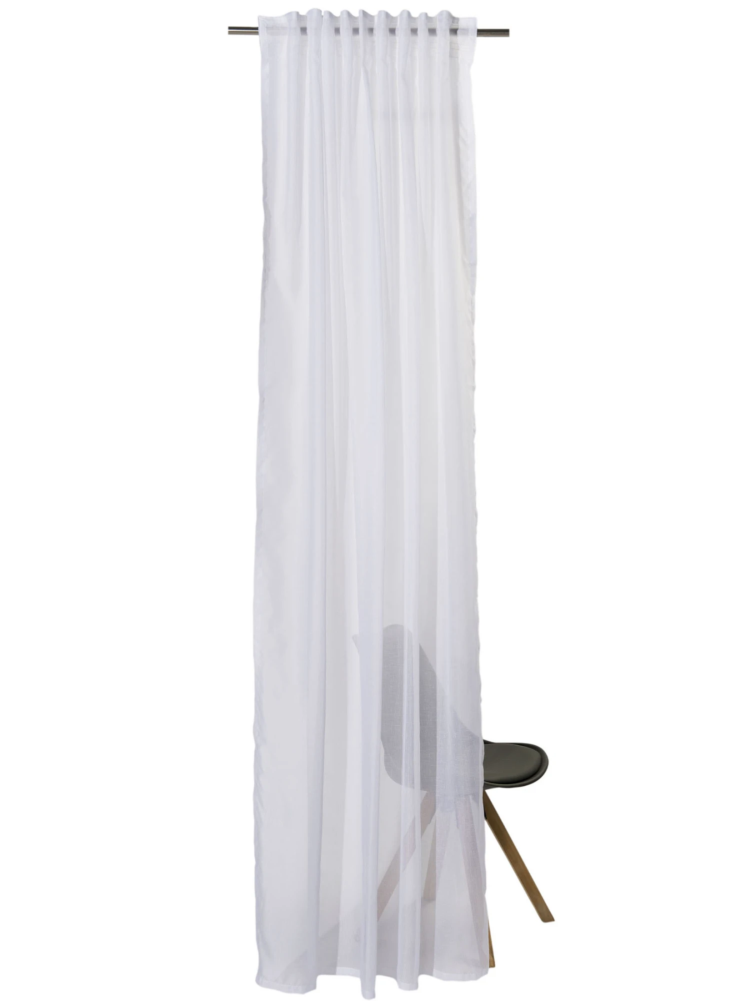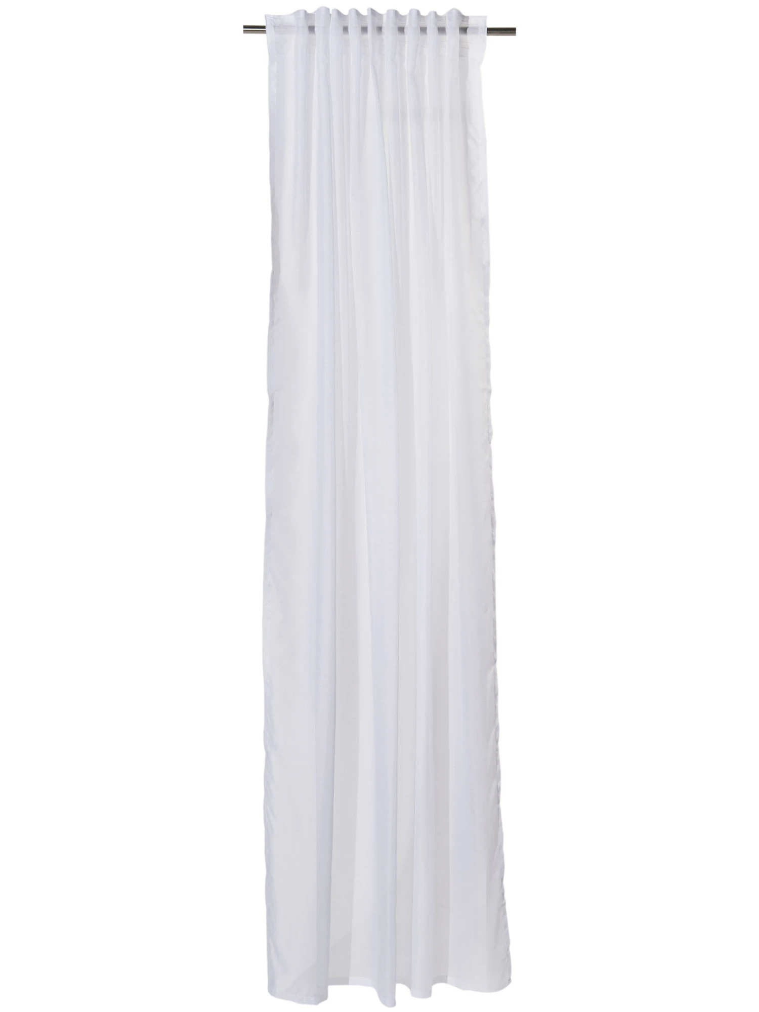 Dicht gewebter Vorhang mit verdeckten Schlaufen. Für Stange und Schiene geeignet. Fein strukturiert.
