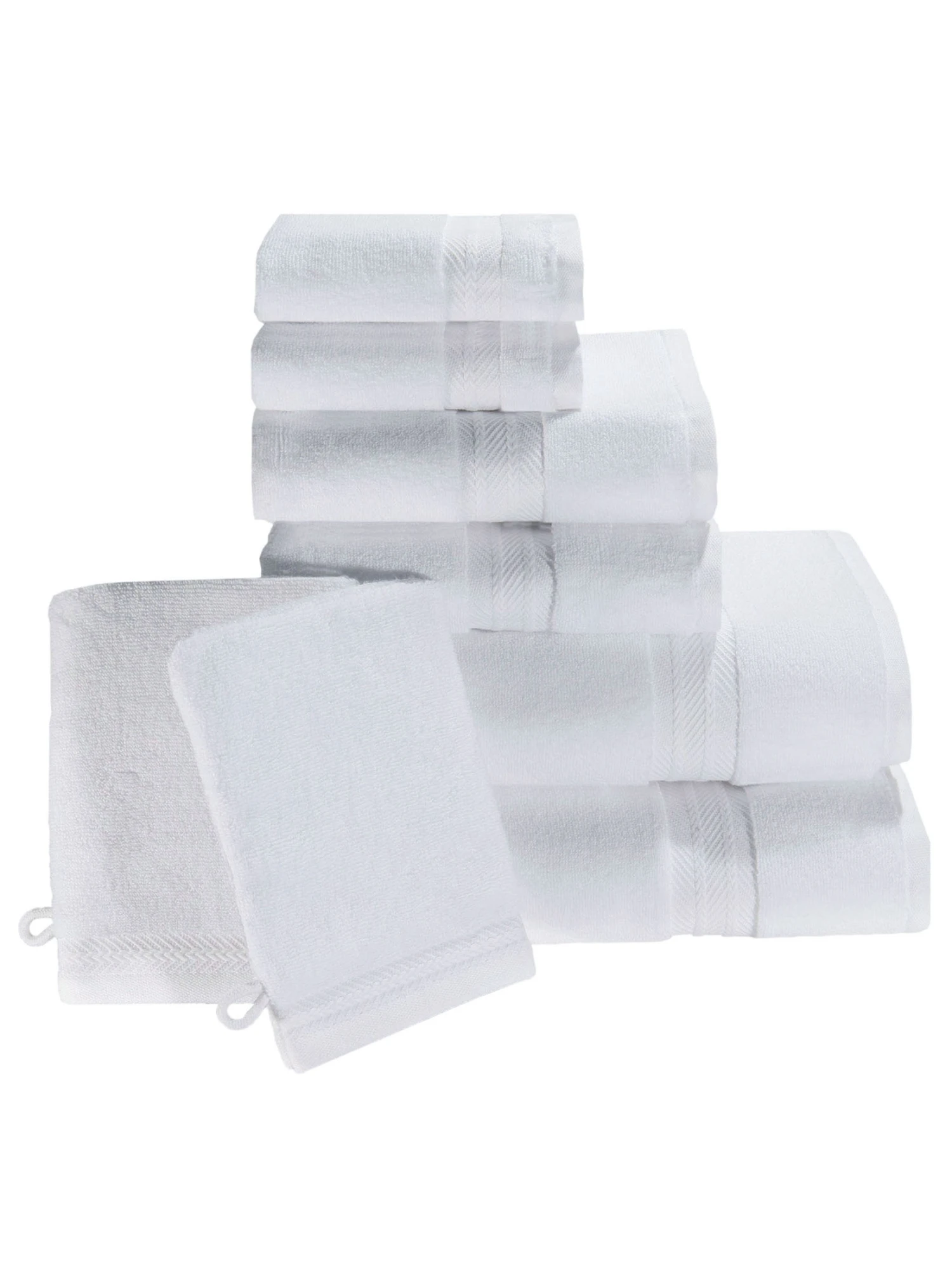 SPARTIPP: MALIBU einfarbiges 8 teiliges Spar-Set: bestehend aus zwei Handtüchern je ca. 50 x 100 cm, zwei Duschtüchern je ca. 70 x 140 cm, zwei Gästetüchern je ca. 30 x 50 cm und zwei Waschhandschuhen je ca. 16 x 22 cm.